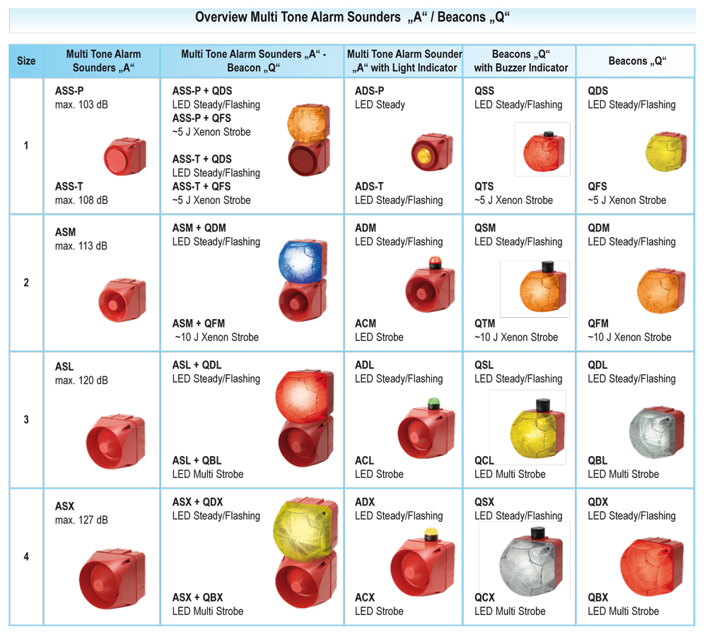 comprehensive range of visual-audible signalling products with dominant audible multi tone sounder and additional visual light indicator