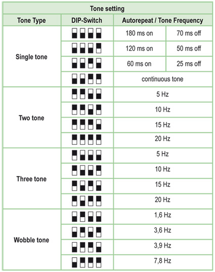4 tone types/tone frequencies selectable by DIP switch