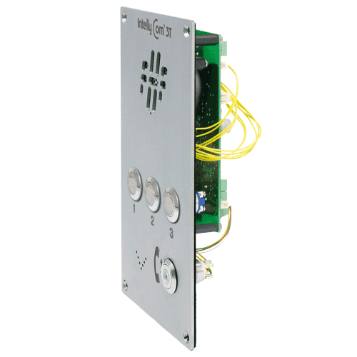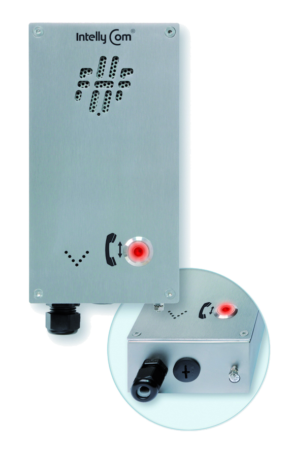 Analogue intercom telephone with amplified listening in stainless steel housing