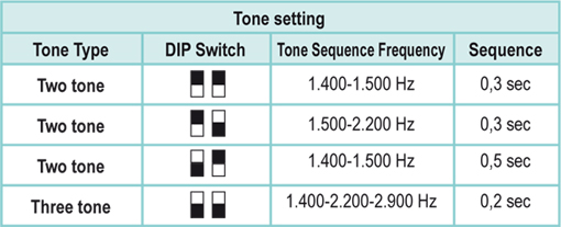4 tone types selectable via DIP switch