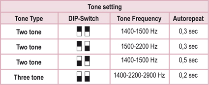 2 sound types and 4 settings selectable (DIP-switch)